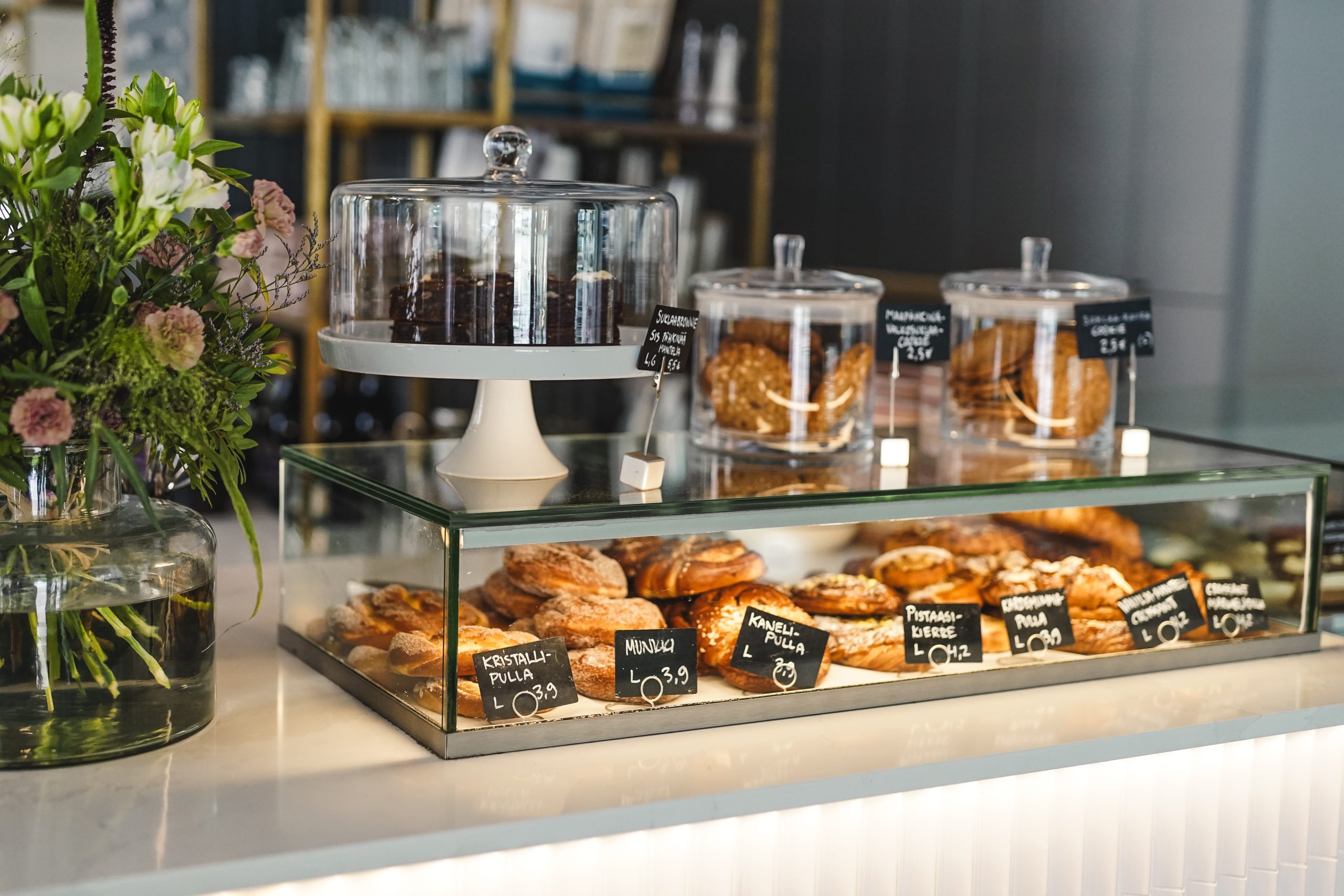Mitä tänään tekisi mieli, suolaista vai makeaa? Kakkuvitriinimme on kaupungin himotuimpia. Leivomme kaiken täällä itse omin käsin – huolella ja hellästi.